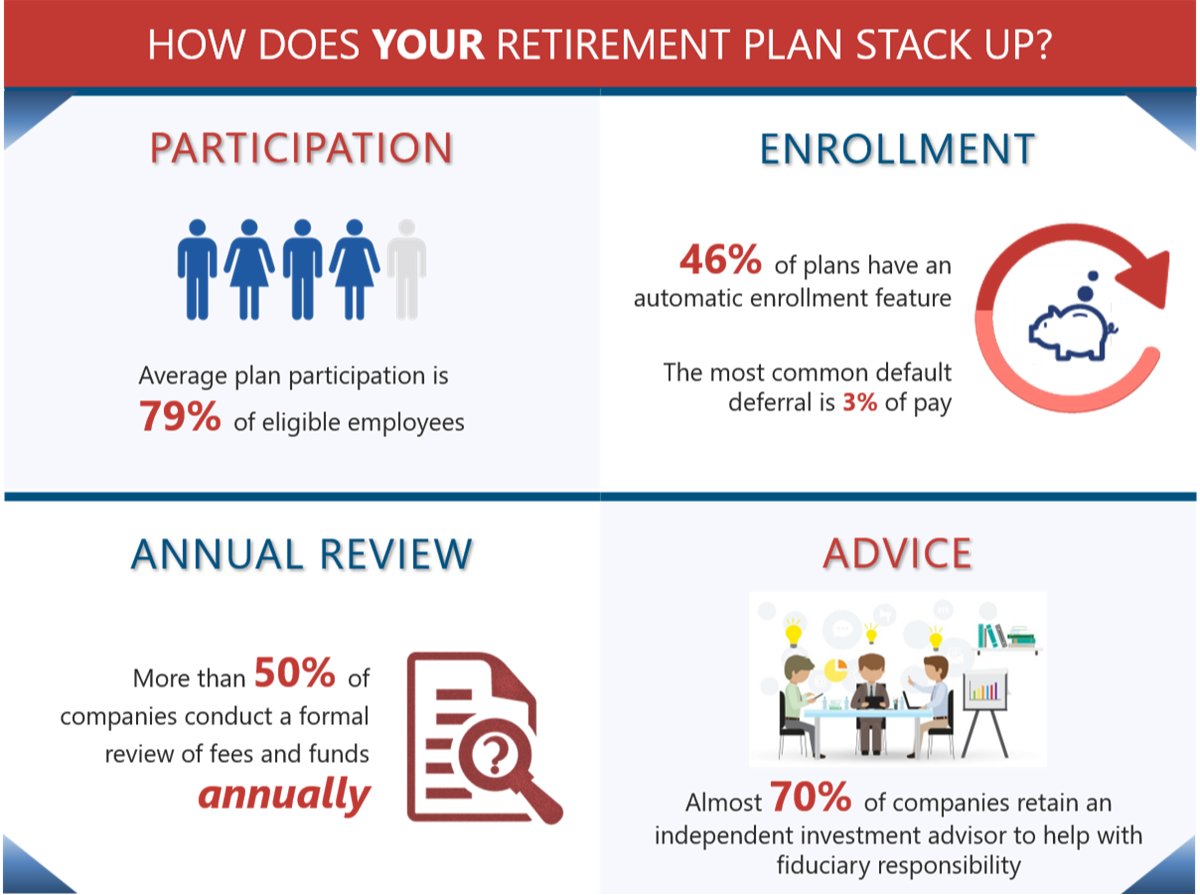 - Benchmark your current plan: We benchmark the fees, services and participation metrics of your plan against similar plans using industry leading research. This satisfies the fiduciary obligations under both ERISA and the new 408(b)(2) fee disclosure rules. We can then make recommendations for any necessary changes.